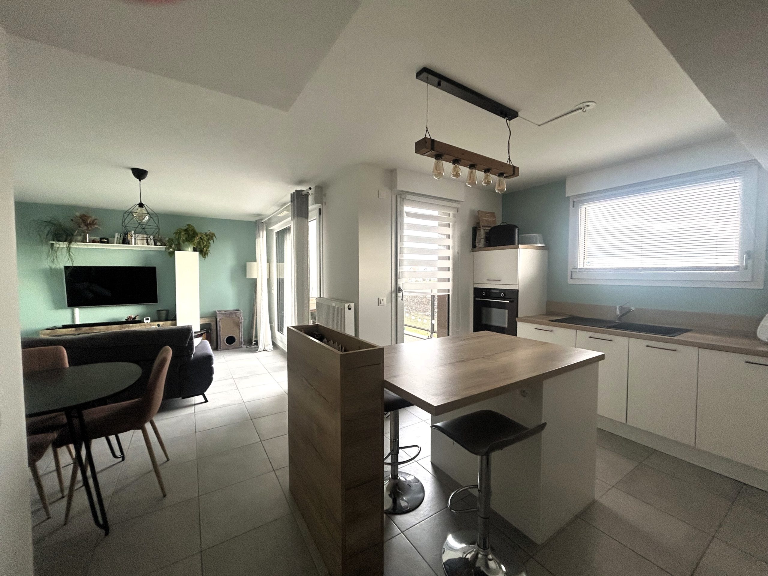 Situé au 1er étage dans un immeuble de 2014 avec ascenseur, appartement 3 pièces d’une surface de 63m² avec terrasse 13.5m² avec vue dégagée sur les champs. Il est composé d’une entrée avec placard de rangement, d’un W.C séparé, d’un espace à vivre ouvert avec cuisine équipée et séjour donnant …
