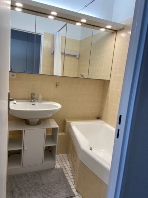 Très bon état et composé d’une entrée avec placard, une kitchenette entièrement équipée, une pièce principale, une salle de bain avec baignoire, lavabo et WC.
