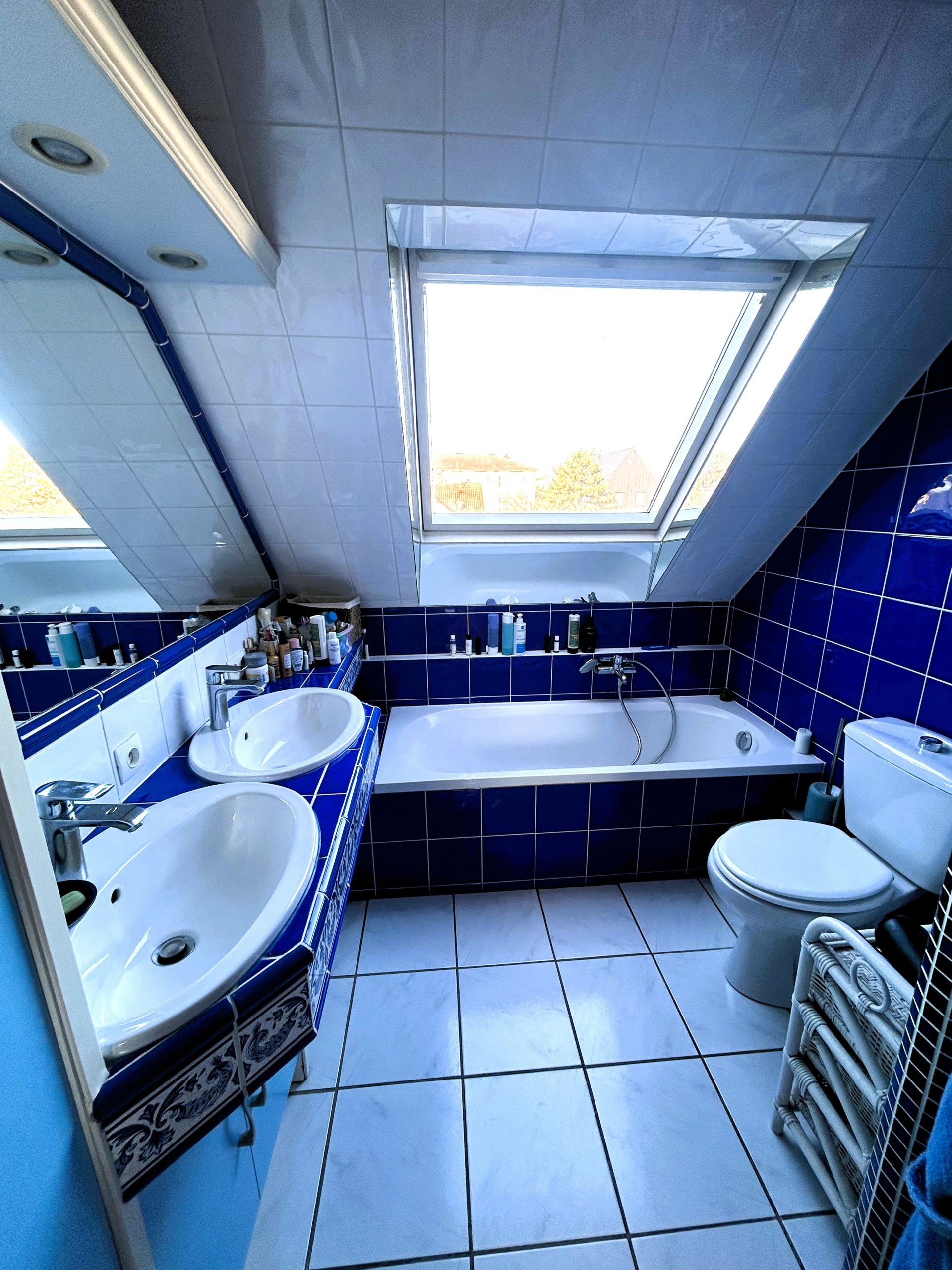 ETAGE: 2 chambres avec placard intégrées (15 m² hab., 13 m ² hab. pour 18 m² au sol), une salle de bain avec baignoire et douche, WC.