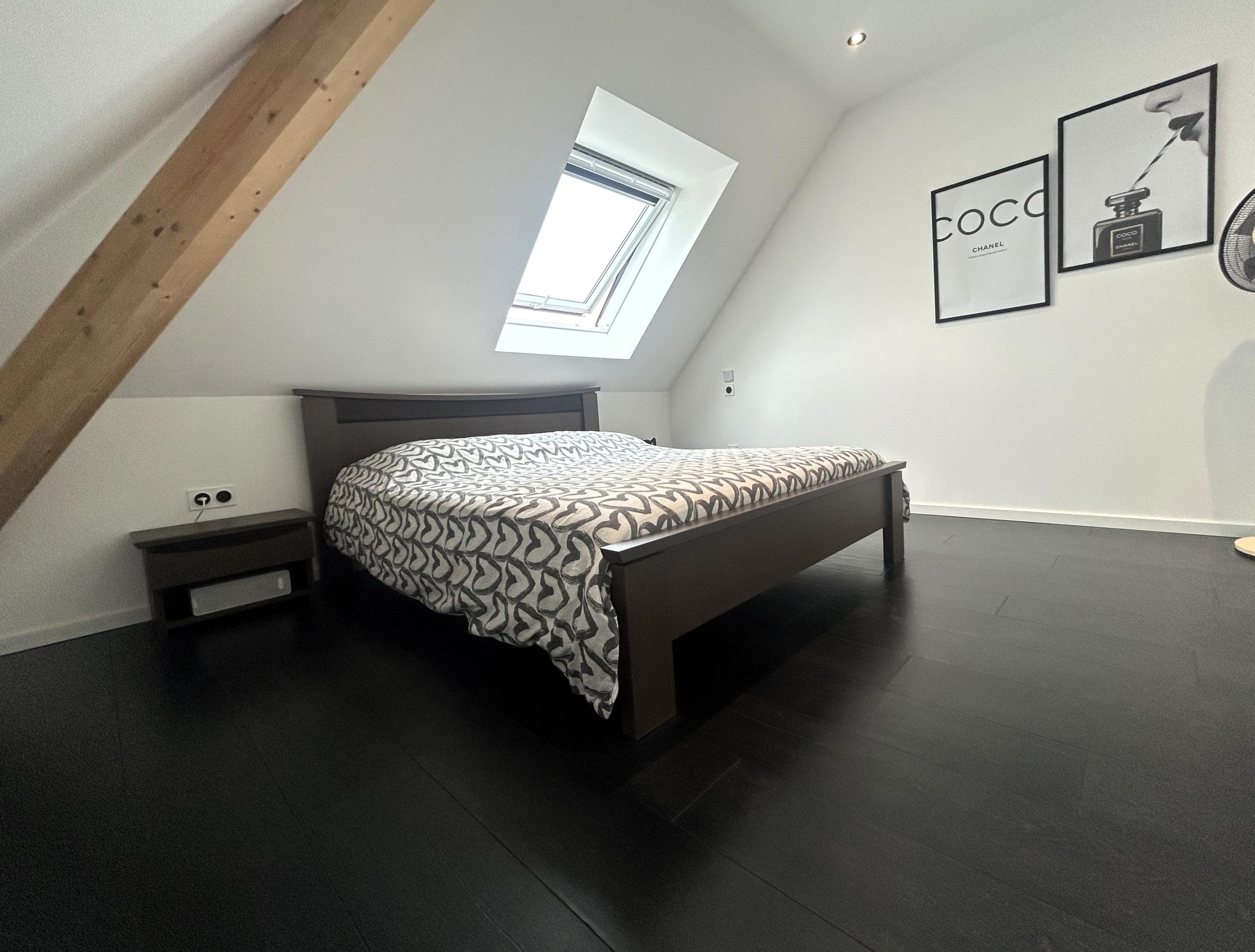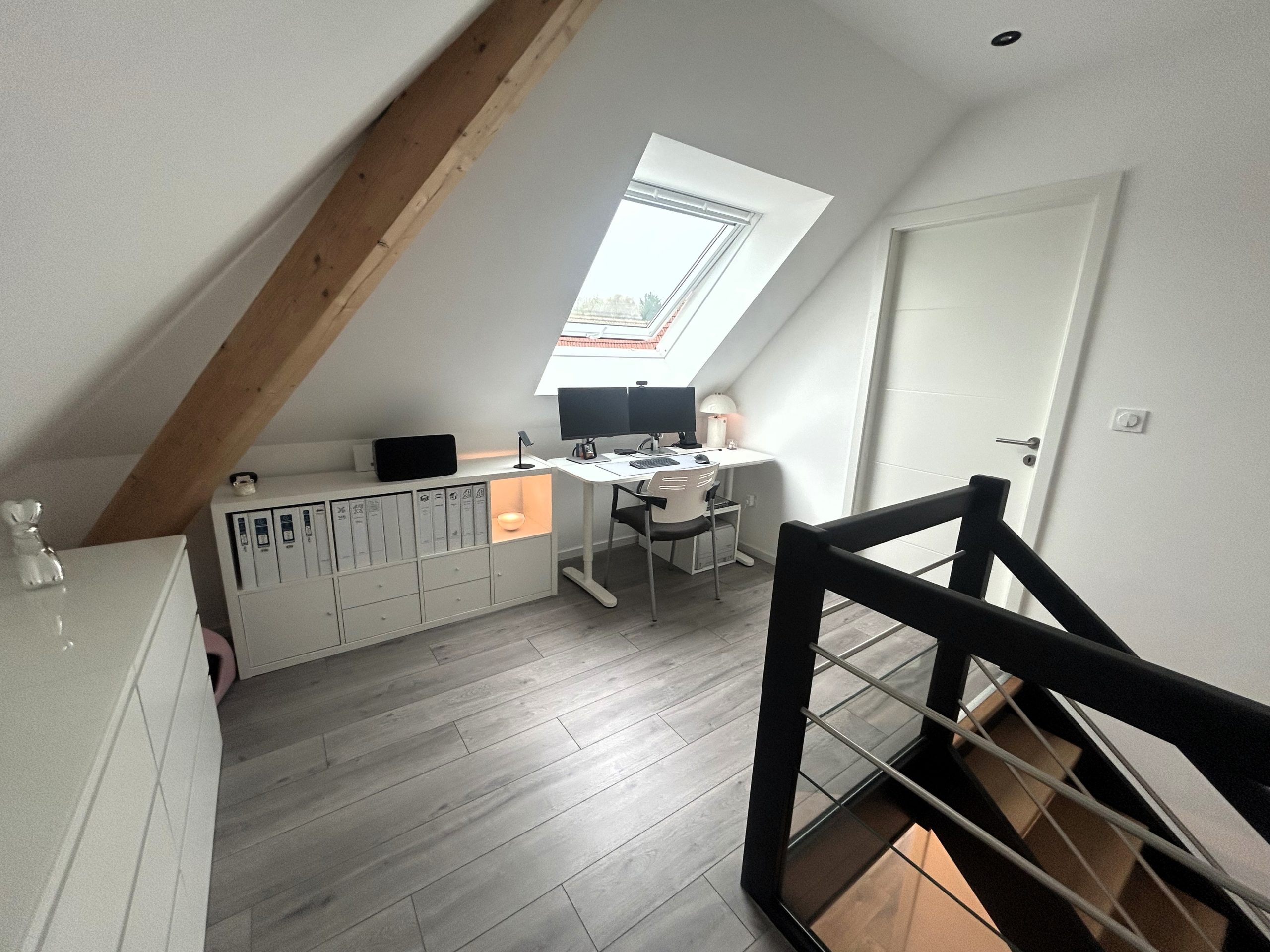 Sous combles : d’une mezzanine avec espace bureau et d’une chambre de 17m² au sol avec velux.